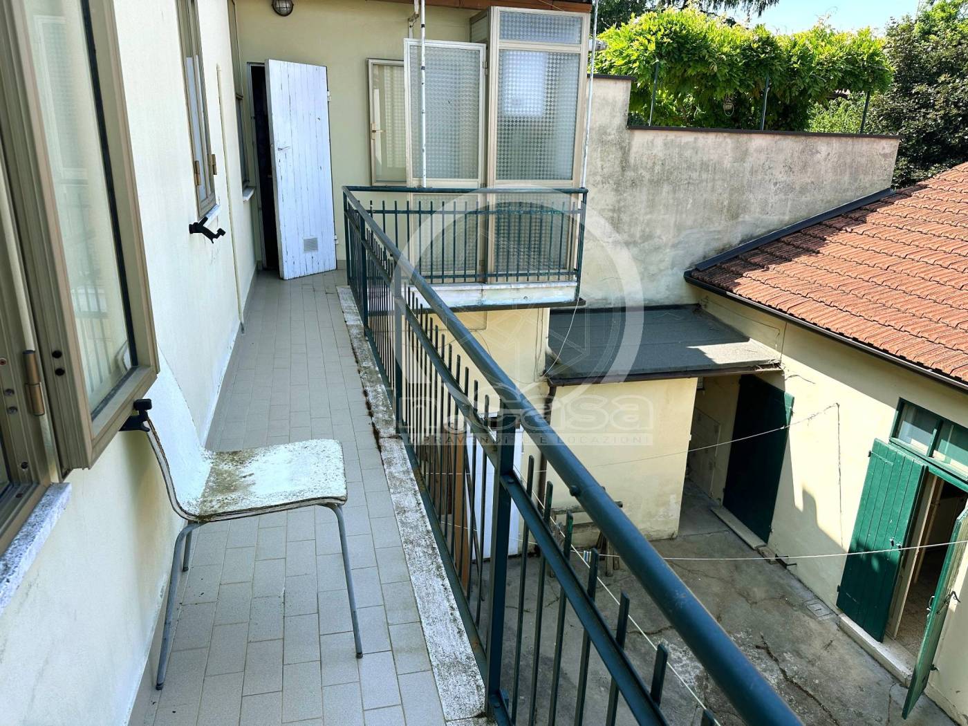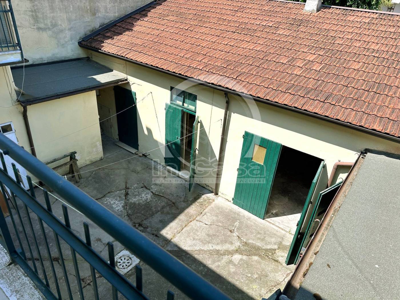 Ravenna S. Rocco : Via Mario Pasi - Casa abbinata ai lai composta da due appartamenti già liberi e da ristrutturare, più un negozio di 26 mq attualmente affittato con contratto in scadenza ad agosto 2031 ad inquilino affidabile e puntuale al canone di 350 euro mensili. PIANO TERRA: ampio ingresso carraio, corte interna di circa 40 mq con spazio per parcheggiare due auto, varie cantine, servizi + negozio di 26 mq. con accesso indipendente da vetrina fronte strada + due locali sgombero e bagno.