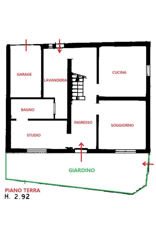 PIANO TERRA (H. 2,90) composto da un ampio ingresso, cucina abitabile, soggiorno, studio, bagno, lavanderia, garage.