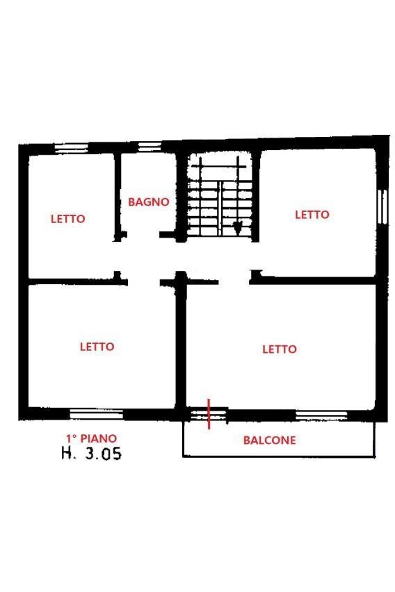 PRIMO PIANO (H 3,05) composto da quattro camere da letto, di cui tre matrimoniali; la camera padronale, di oltre 22 mq, consentirebbe la realizzazione di un bagno privato e di una cabina armadio. Completano il piano un bagno e un balcone.